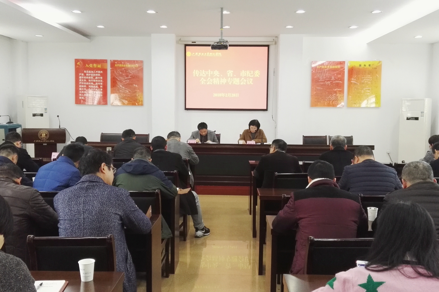 2月28日上午,学院党委召开专题会议,传达学习中央、省、市纪委全会精神。学院领导、教学督导,中层干部,各系(部)综合办、学工办主任参加会议。会议由党委书记黄宏伟主持。