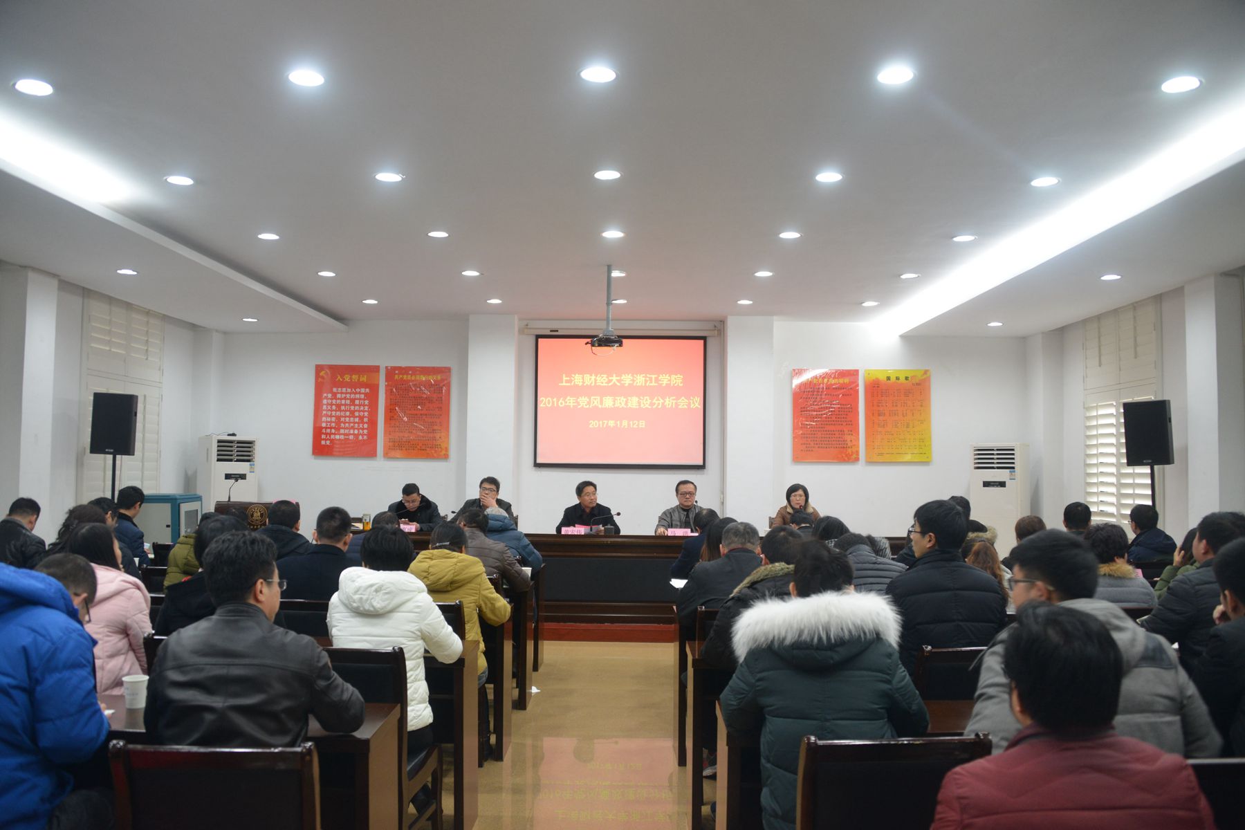 2017年1月12日,在学院28-118会议室召开党风廉政建设分析会。会议由学院纪委书记黄红华主持,院党政领导班子成员、教学督导、全体中层干部、党总支、支部书记、委员,系(部)综合办、学工办主任及校务监督委员会成员参加了会议。