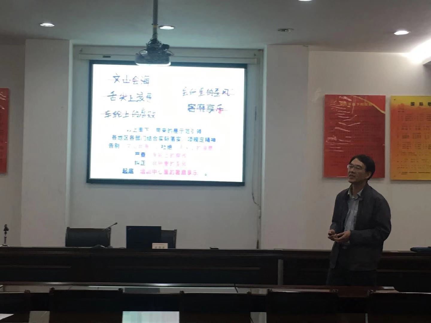 11月13日晚上,浙江师范大学纪委副书记陈静源作客周三干部夜学,作了《全面从严治党和“清廉校园”——全面加强纪律建设》专题讲座,学院全体中层干部、各系(部)综合办、学工办主任,全体纪检工作人员参加讲座。