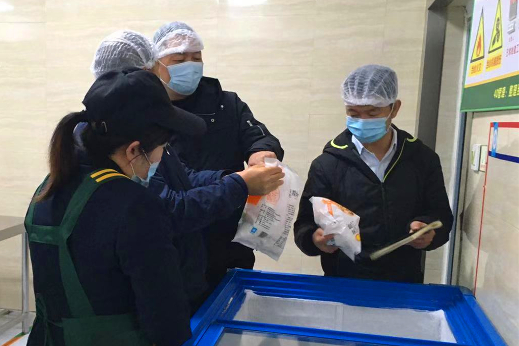 检查人员现场查看了食堂冷冻产品和冷藏食品的进货登记台账、索证索票、存放设备以及冻品外包装的产品信息,详细询问了进货来源、用途用量、清洗消杀情况,对食堂环境消杀、卫生清洁、场所通风、菜品留样和人员健康管理等落实情况也进行了现场检查。