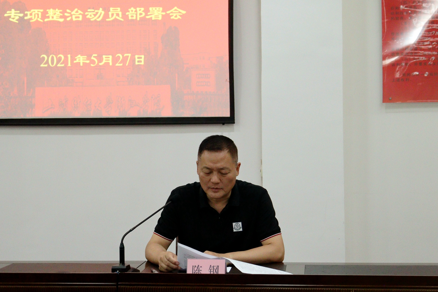 会上,陈钢传达了全市动员部署会议精神并对学院专项整治工作作了动员部署。陈钢强调,要提高政治站位,把思想和行动统一到上级决策部署及要求上来;要明确目标任务,扎实开展八大专项整治行动;要加强组织领导,准确把握工作原则。