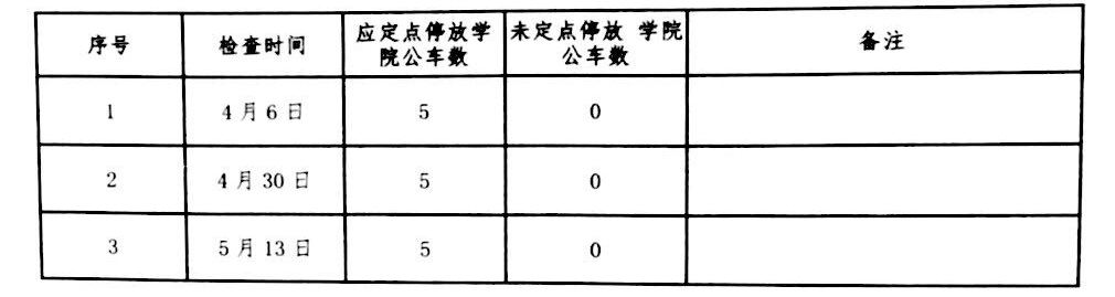 本学期,监察部门共开展3次公车停放检查,具体检查情况如下: